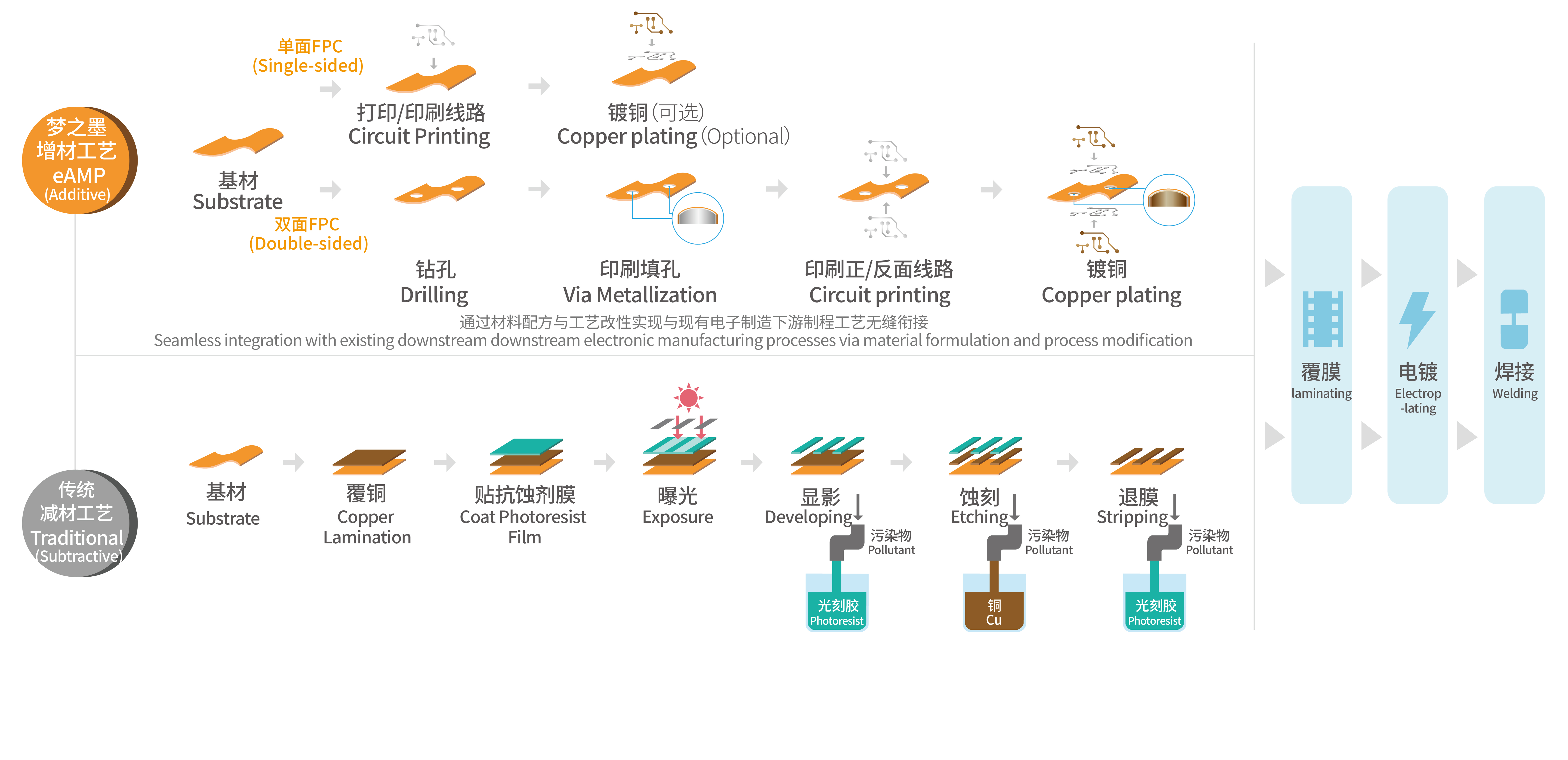 良率高、線寬線距優(yōu)越、耐彎折性強可拉伸性強、無縫銜接后續(xù)制程